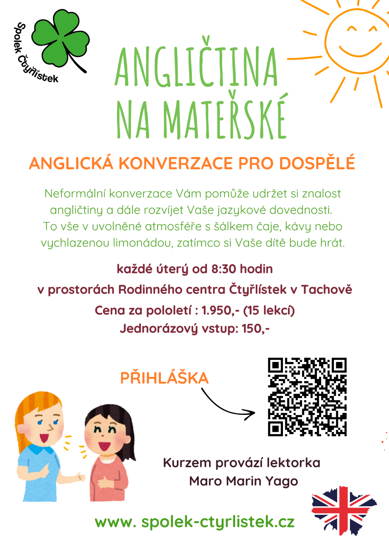 Kurz probíhá pod vedením lektorky Soni Sedlákové v prostorách Rodinného centra Čtyřlístek na adrese Pobřežní 2153, Tachov.